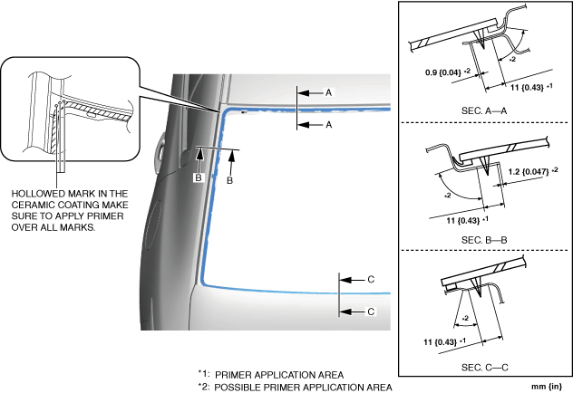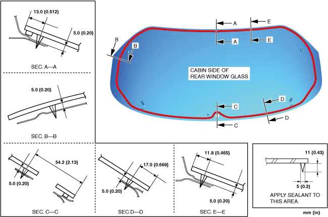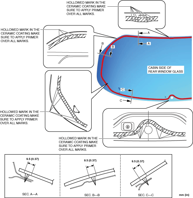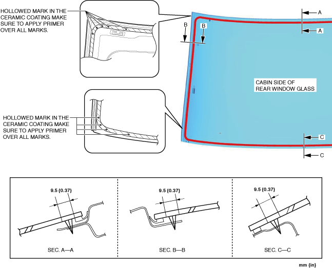 2.Clean and degrease an approx. 50 mm {2.0 in} wide strip along the perimeter of the glass.