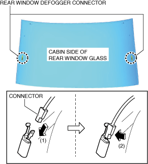 13.Connect the rear window defogger connectors in the direction of the arrows in the order of (1), (2) shown in the figure.