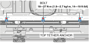 • The top tether anchors are integrated into the rear seat back frame.• For the top tether anchor removal/installation, refer to the rear seat back frame removal/installation. (See REAR SEAT BACK FRAME REMOVAL/INSTALLATION.)