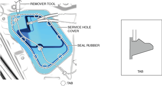 • When removing the service hole cover, insert the remover tool so as not to damage the seal rubber.