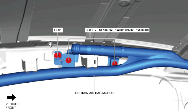 6.Partially peel back the curtain air bag module. (rear side)