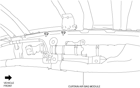 5.Remove the clip. (rear side) (See CURTAIN AIR BAG MODULE REMOVAL/INSTALLATION [STANDARD DEPLOYMENT CONTROL SYSTEM – MEXICO SPEC.].) (See CURTAIN AIR BAG MODULE REMOVAL/INSTALLATION [TWO-STEP DEPLOYMENT CONTROL SYSTEM – US/CANADA SPEC.].)