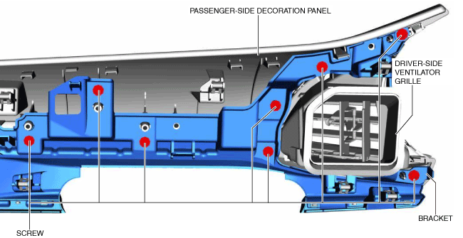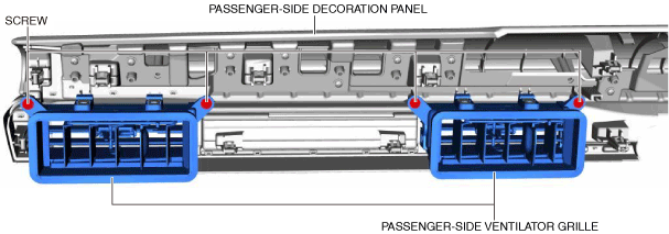 4.Remove the driver-side ventilator grille from the passenger-side decoration panel.