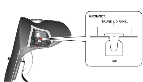• When removing the trunk lid light from the trunk lid, the trunk lid light could contact the trunk lid and damage it. Apply protective tape to the trunk lid before removing the trunk lid light from the trunk lid.