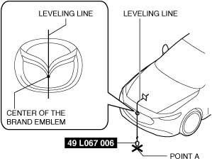 5.Adjust the SST so that it is aligned with the center of the brand emblem, determine the center position at the front of the vehicle, and mark the center position (point A) on the floor surface.