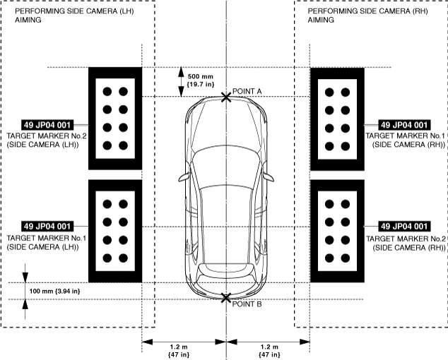 • For the side camera aiming, 1 set(1 set/2 targets) of the SST (49 JP04 001) are required.