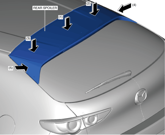 4.Push the rear spoiler in the direction of the arrows in the order of (1), (2), (3), (4), (5) and install the rear spoiler.