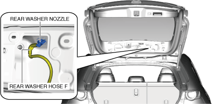 4.Disconnect the rear washer hose F from the rear washer nozzle.