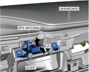 4.Move the GPS antenna in the order of arrows (1) and (2) shown in the figure, and remove it while detaching the guides.