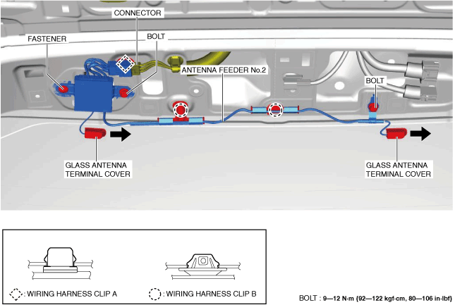 4.Remove the glass antenna terminal cover in the direction of the arrow shown in the figure.