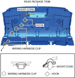 • When replacing the rear package trim, remove the high-mount brake light. (See HIGH-MOUNT BRAKE LIGHT REMOVAL/INSTALLATION.)