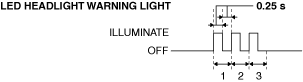 • The initialization is completed if the LED headlight warning light flashes three times every 0.25 s and turns off. Go to the next step.
