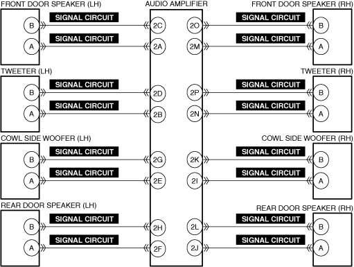 INSPECT SPEAKER SIGNAL CIRCUIT FOR SHORT TO GROUND AND OPEN CIRCUIT