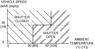 • Opens/closes the shutter according to the vehicle speed, engine coolant temperature, or the load condition due to A/C operation.