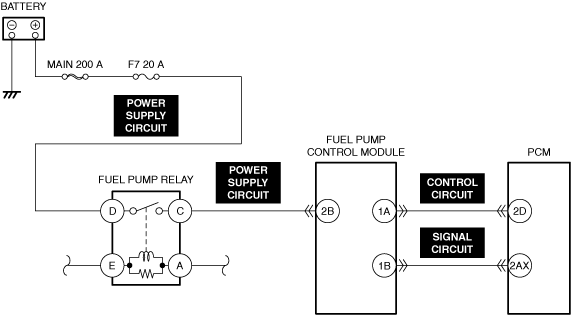 • Short to ground in fuel pump control module power supply circuit
