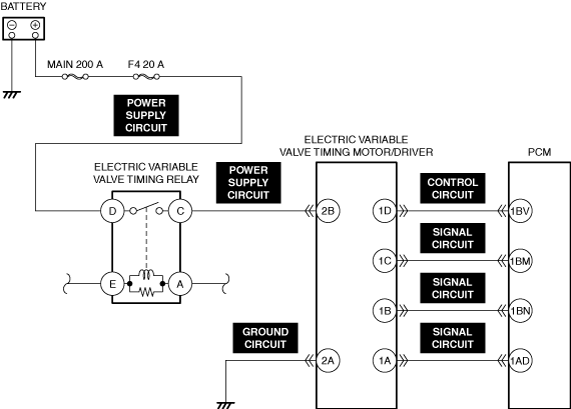 INSPECT ELECTRIC VARIABLE VALVE TIMING RELAY POWER SUPPLY CIRCUIT FOR SHORT TO GROUND AND OPEN CIRCUIT