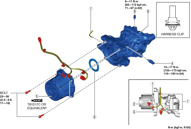 1.Apply a thin layer of silicone sealant TB1217C or equivalent to the contact surfaces of the coupling component and the rear differential.