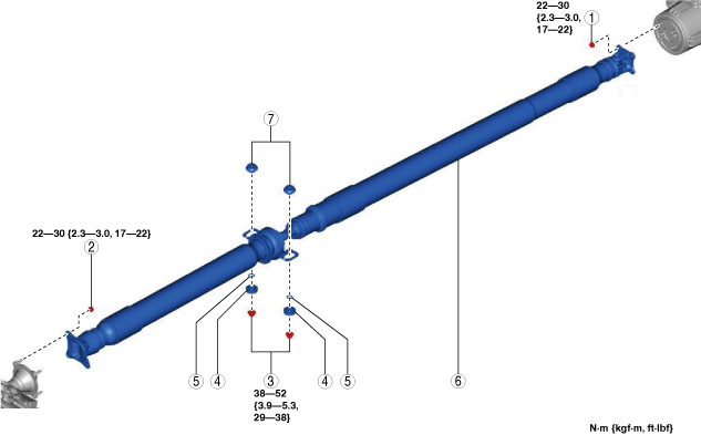 2.Align the alignment marks, and temporarily install the nuts (front, rear, center bearing support).