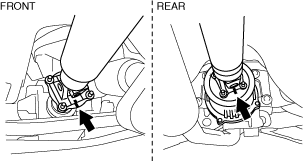 am3zzw00036342• If excessive force is applied in the axial direction of the constant velocity joint, the internal parts of the constant velocity joint could be damaged. Do not apply excessive force in the axial direction.