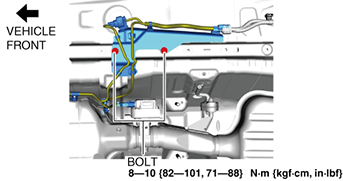 • If the nuts are loosened, verify that the stud bolt tightening torque against the coupling is 6.4 N·m {65 kgf·cm, 57 in·lbf} or more. If the tightening torque is less than 6.4 N·m {65 kgf·cm, 57 in·lbf}, tighten the stud bolt with 6.4—9.6 N·m {66—97 kgf·cm, 57—84 in·lbf}.