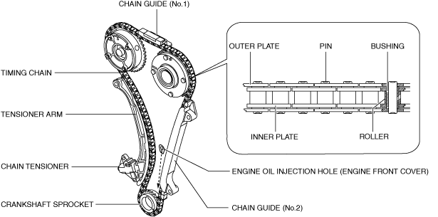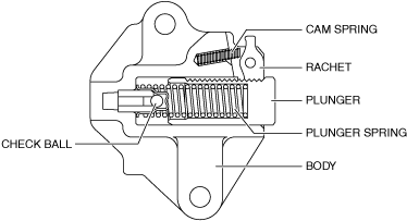 • The chain tensioner constantly maintains the timing chain tension and the timing chain operation is stabilized.