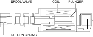 • The OCV consists of a spool valve which switches the engine oil passage and a plunger, coil, and return spring which operate the spool valve.