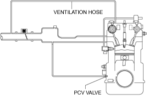 • Prevents release of blow-by gas (unburnt gas) into the atmosphere.• The intake manifold vacuum introduces blow-by gas to the intake manifold via the PCV valve and the ventilation hose.