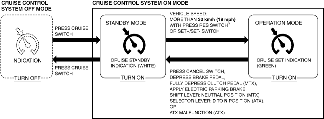 If there is a malfunction with the ATX, the cruise control system goes on standby. (The pre-set vehicle speed is stored.)