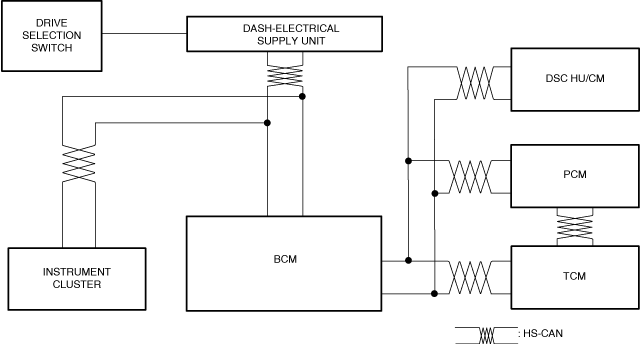 3.The Dash-Electrical Supply Unit sends (4) the drive selection switch input information to the BCM.