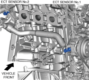 • The ECT sensor is located near the engine coolant control valve and the water pump.