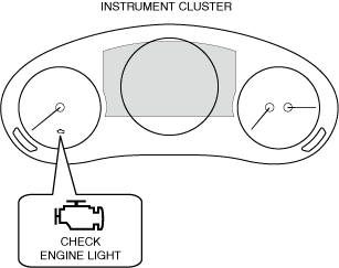 • The check engine light illuminates when a malfunction occurs in the engine control system, and it illuminates at the same time a DTC is recorded in the PCM.• The PCM sends a check engine light illumination request to the instrument cluster via CAN communication.