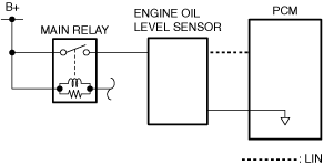 • The engine oil level sensor sends the signal to the PCM, which changes according to the engine oil level, via LIN communication.