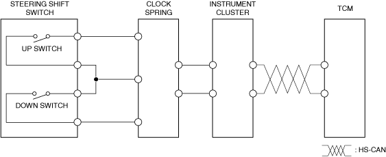 • The TCM detects the steering shift switch operation condition by opening/closing the up or down switch contact point for the steering shift switch.