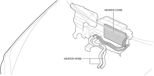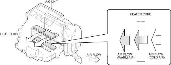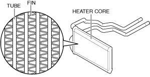 • The heater system intakes a portion of the warmed engine coolant into the heater core and circulates it.• The heater core consists of a tube which passes engine coolant, and the heat radiation fin. am3zzn00008082 am3zzn00008082