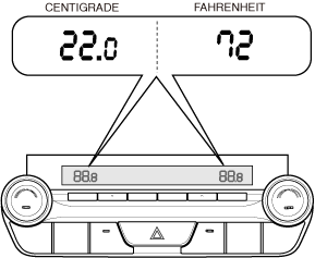 • When the ambient temperature display in the instrument cluster is switched between Centigrade and Fahrenheit, the set temperature display in the climate control unit is switched between Centigrade and Fahrenheit.