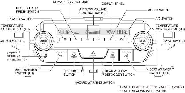 • When the SYNC mode is on, the passenger temperature setting operates in conjunction with the driver temperature setting. (SYNC switch indicator turns on)