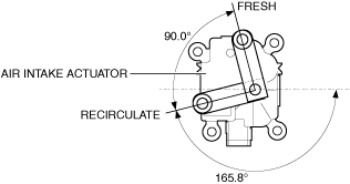 • A potentiometer-type air intake actuator has been adopted.• The air intake actuator is located on the blower unit.• The operation range of the air intake actuator is as indicated in the diagram.