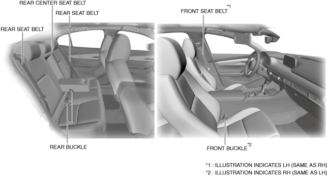 ― Front pre-tensioner seat belt― ELR (Emergency Locking Retractor: emergency locking mechanism)― Load limiter― ALR (Automatic Locking Retractor: child-restraint seat locking mechanism) (passenger’s side)