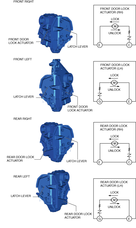 • The built-in motor is operated in the unlock direction and the latch lever releases when an inner/outer handle is operated.