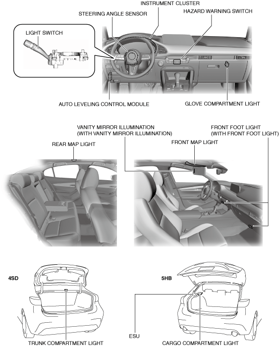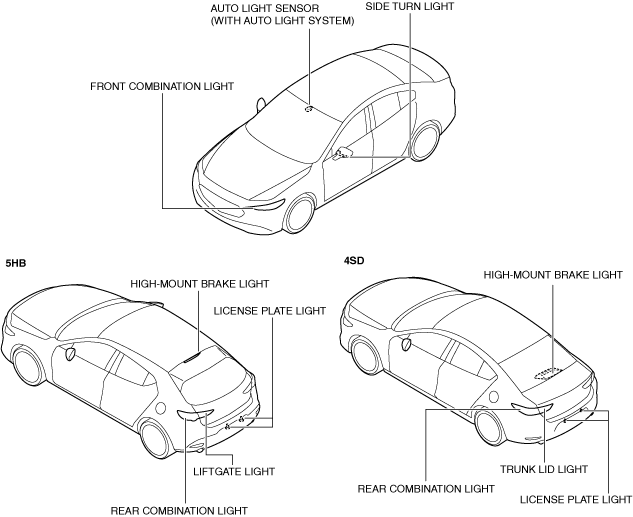 ― Auto light system (with auto light system)― Headlight auto leveling system― Auto light-off system― Daytime running light (DRL) system― Coming home light― Leaving home light