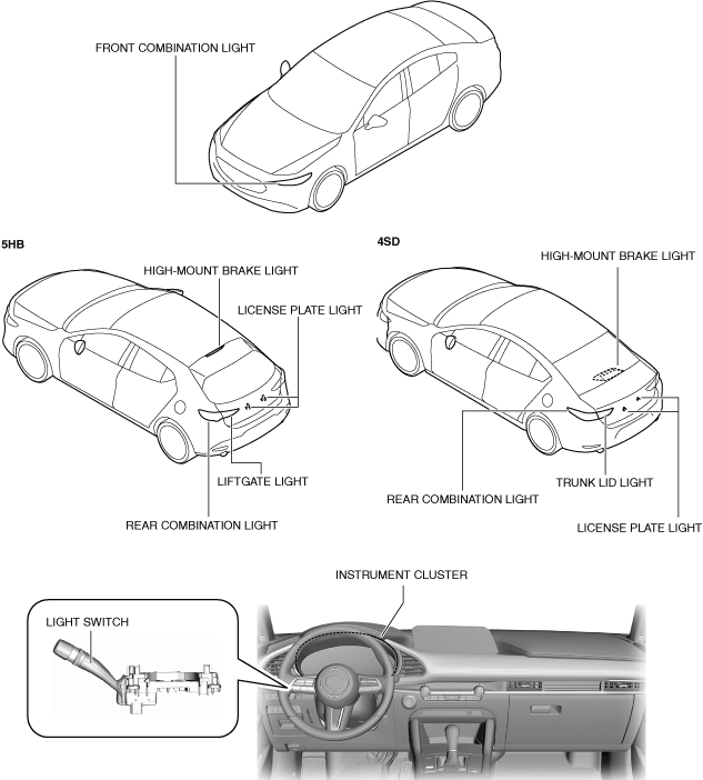 • The auto light-off system turns off the TNS (parking lights) or headlights automatically.