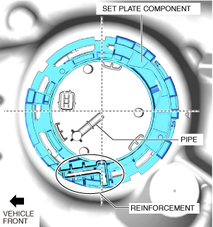 1.Align the reinforcement part of the set plate component near the pipe area of the fuel pump unit as shown in the figure and assemble.