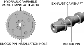 2.Align the knock pin on the end of the exhaust camshaft with the knock pin installation hole on the actuator side, and temporarily assemble the bolt.