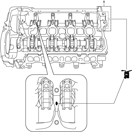 • To prevent engine oil leakage, apply sealant to the rear camshaft cap installation area on the exhaust side or the rear camshaft caps on the exhaust side of the cylinder head, and seal the journal.