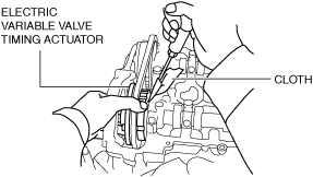 6.Remove the electric variable valve timing motor/driver. (See ELECTRIC VARIABLE VALVE TIMING ACTUATOR, HYDRAULIC VARIABLE VALVE TIMING ACTUATOR REMOVAL/INSTALLATION [SKYACTIV-G (WITHOUT CYLINDER DEACTIVATION (US))].)
