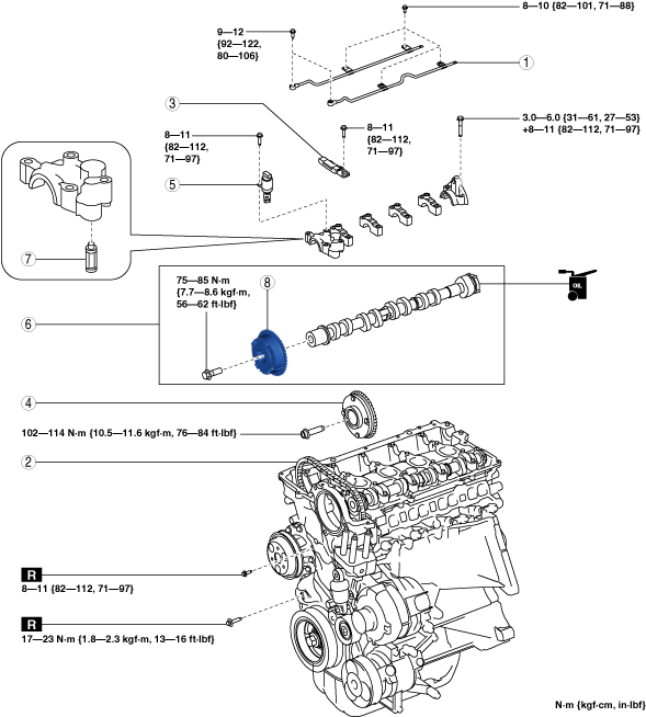 ELECTRIC VARIABLE VALVE TIMING ACTUATOR, HYDRAULIC VARIABLE VALVE TIMING ACTUATOR REMOVAL/INSTALLATION [SKYACTIV-G (WITHOUT CYLINDER DEACTIVATION (US))]