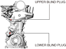 4.Install the blind plugs (upper and lower) for the engine front cover service holes.