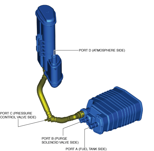 1.Perform the following procedure to verify the charcoal canister airflow. (Between port A and port C)