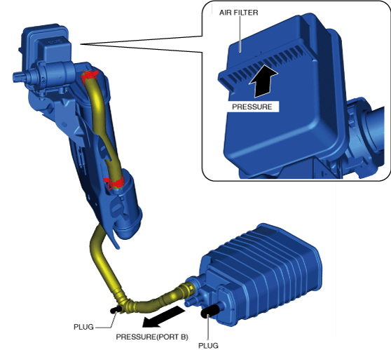 3.Perform the following procedure to verify the charcoal canister airflow. (Between port B and air filter)