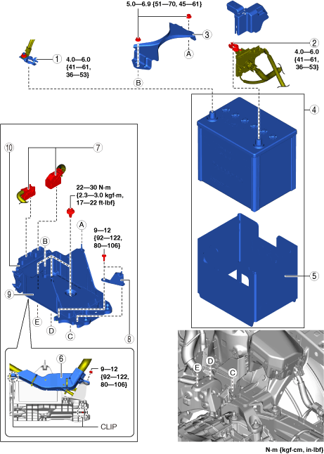 1.Tighten the battery tray installation bolts in the order shown in the figure.